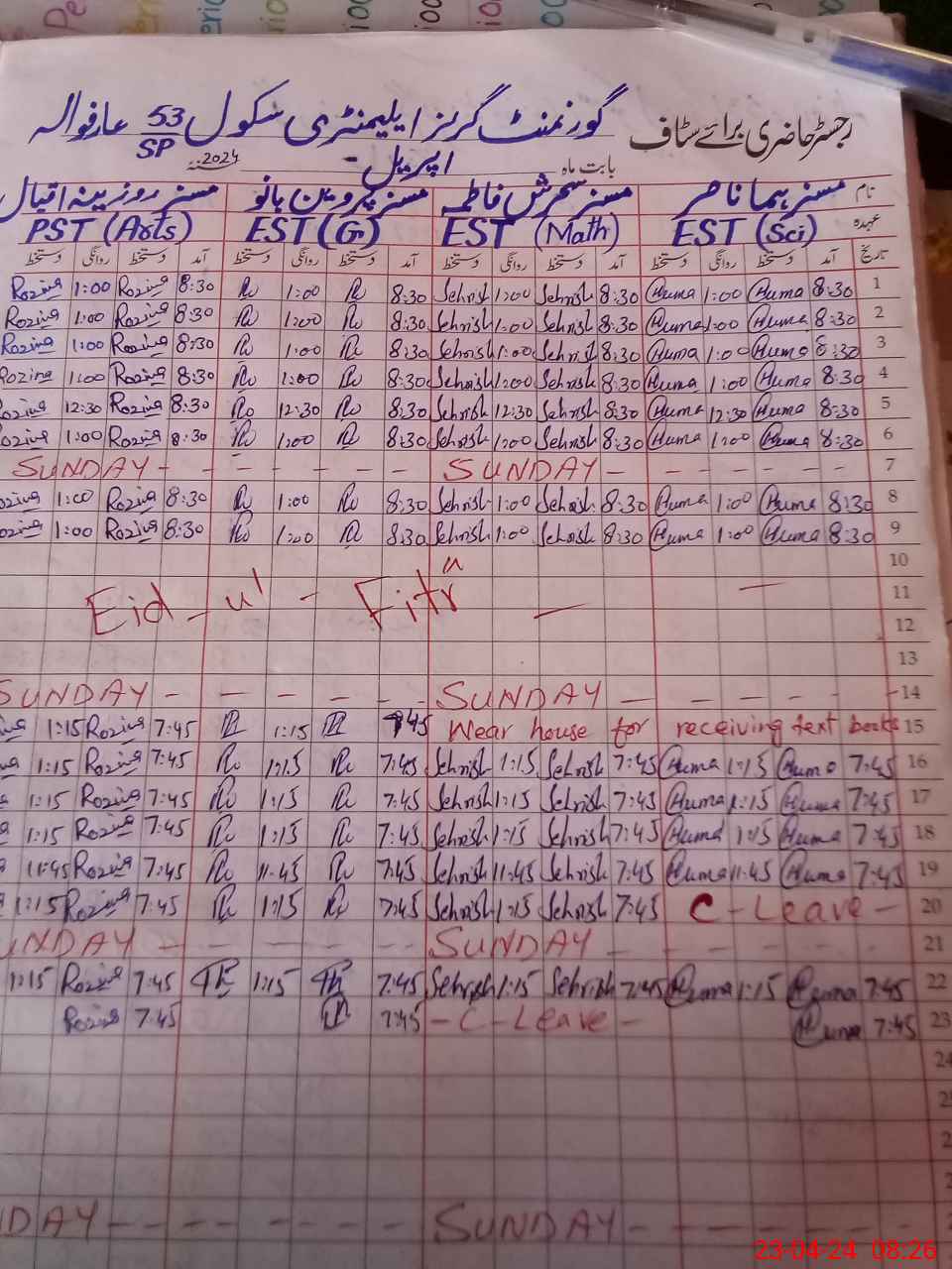 | CNIC | Full Name | Designation | R/C | Absence During Last Calender Month |