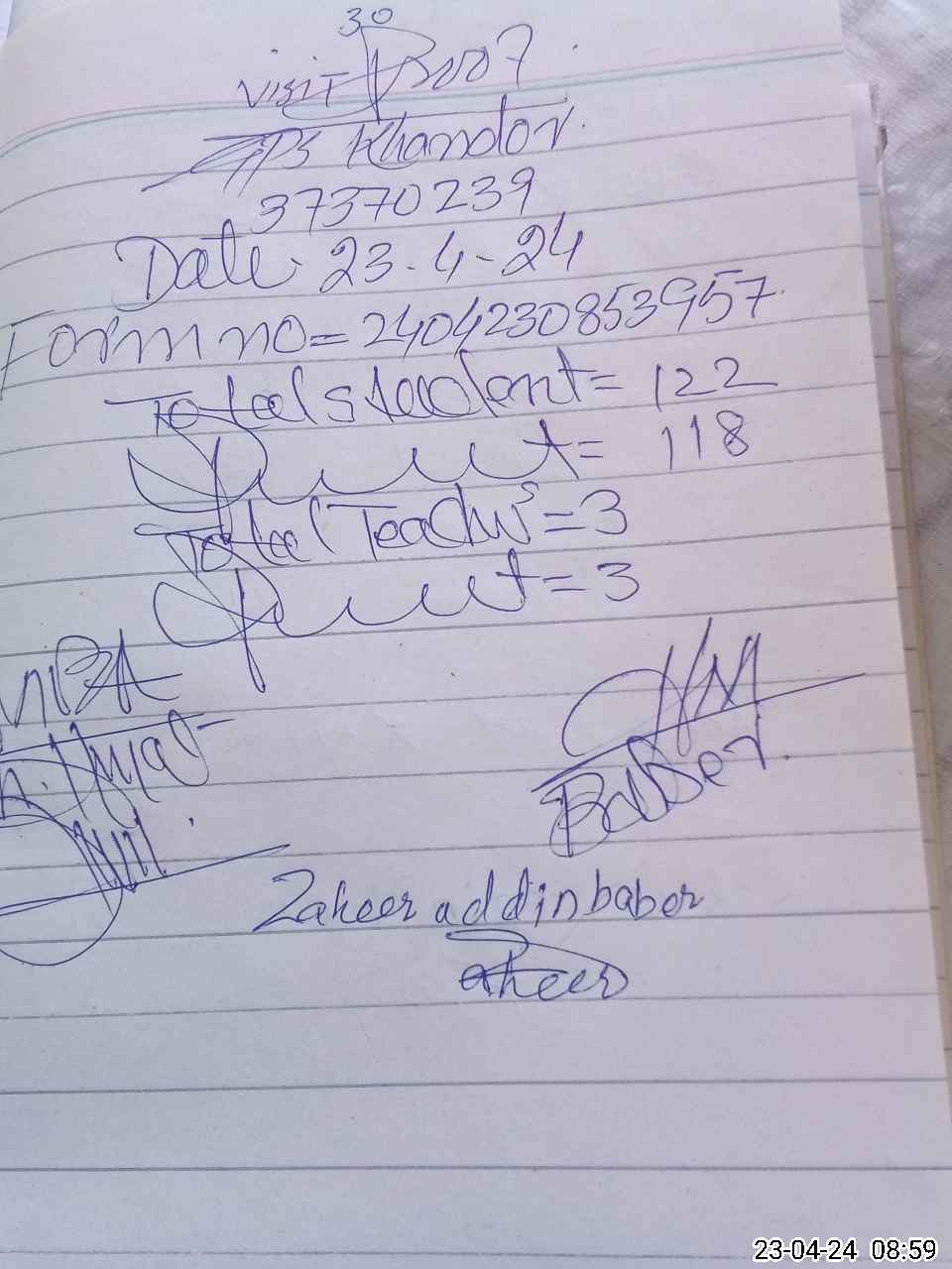 | Name: Mu**** Ba**** Designation: (School Headmaster's/Headmistress's) PST Phone/Cell Number: 03**** |