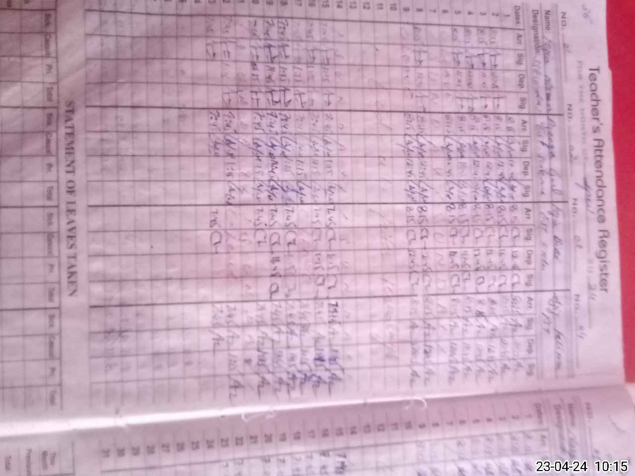 | No. of Students Present - Female | 6 | 0 | 18 | 23 | 26 | 23 | 23 | 22 | 25 | 30 | 18 | 214 | ||||