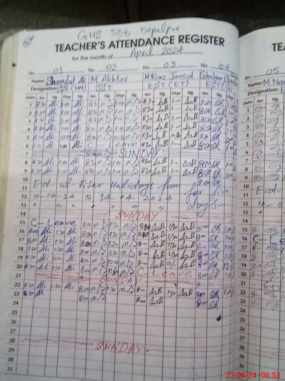| CNIC | Full Name | Designation | R/C | Absence During Last Calender Month |