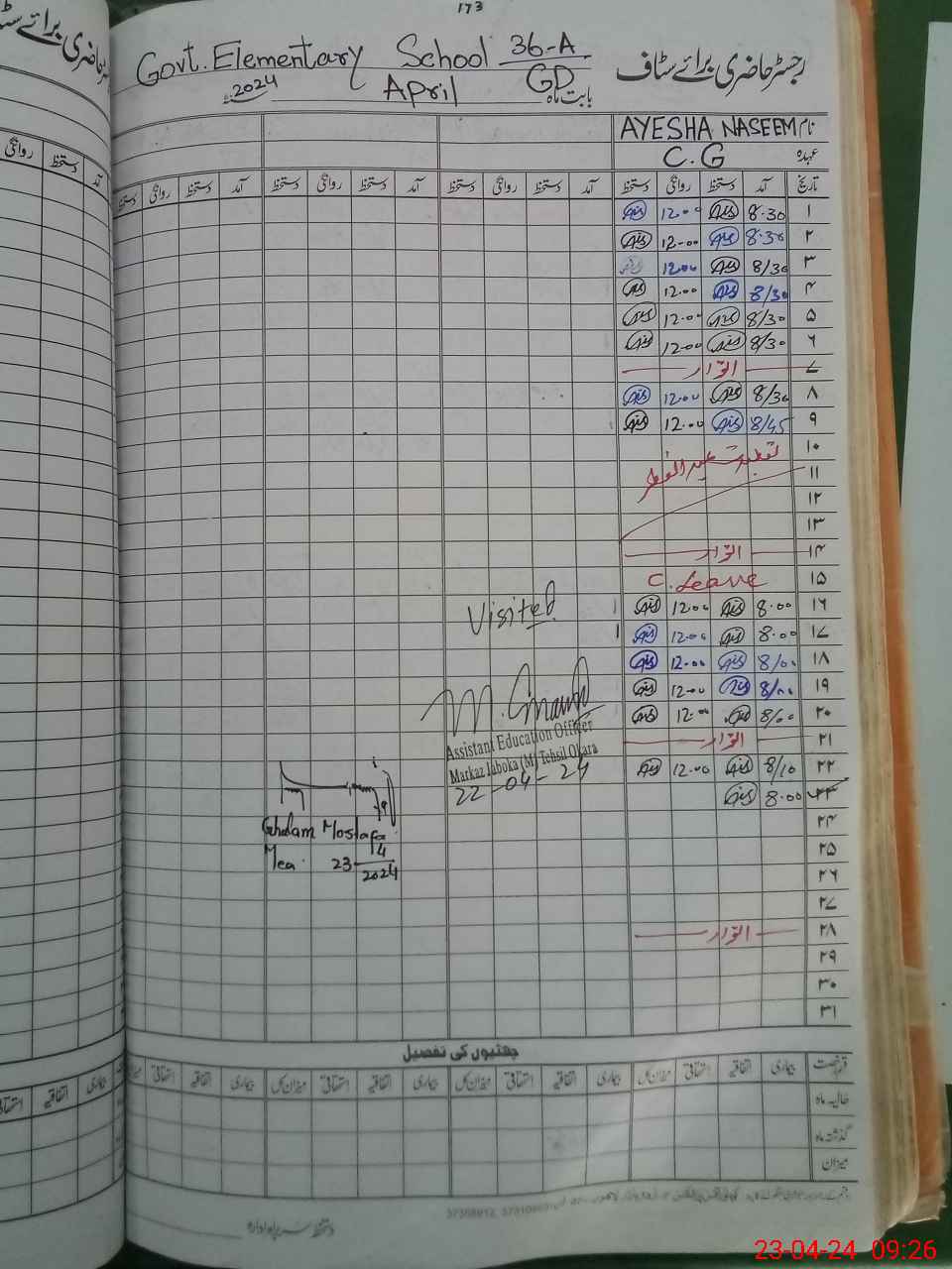 | Name: Gh**** Ra**** Designation: (School Headmaster's/Headmistress's) EST Phone/Cell Number: 03**** |