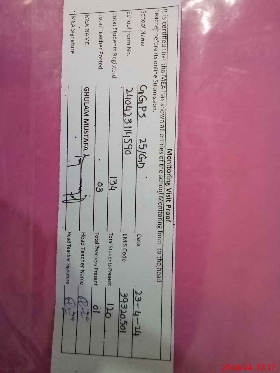 | EMIS Code: 39320501 | Name of School: GGPS 25/G.D | |||