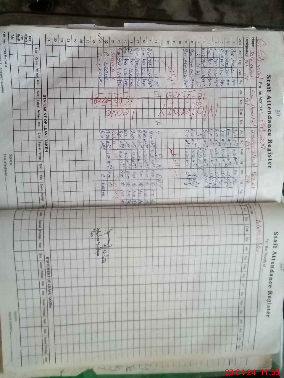 | 00**** | Ij**** Al**** | CHOUKIDAR | Regular | 1 | 0 | 0 | 0 | 0 | 0 | 0 | 0 | 1 | Casual |