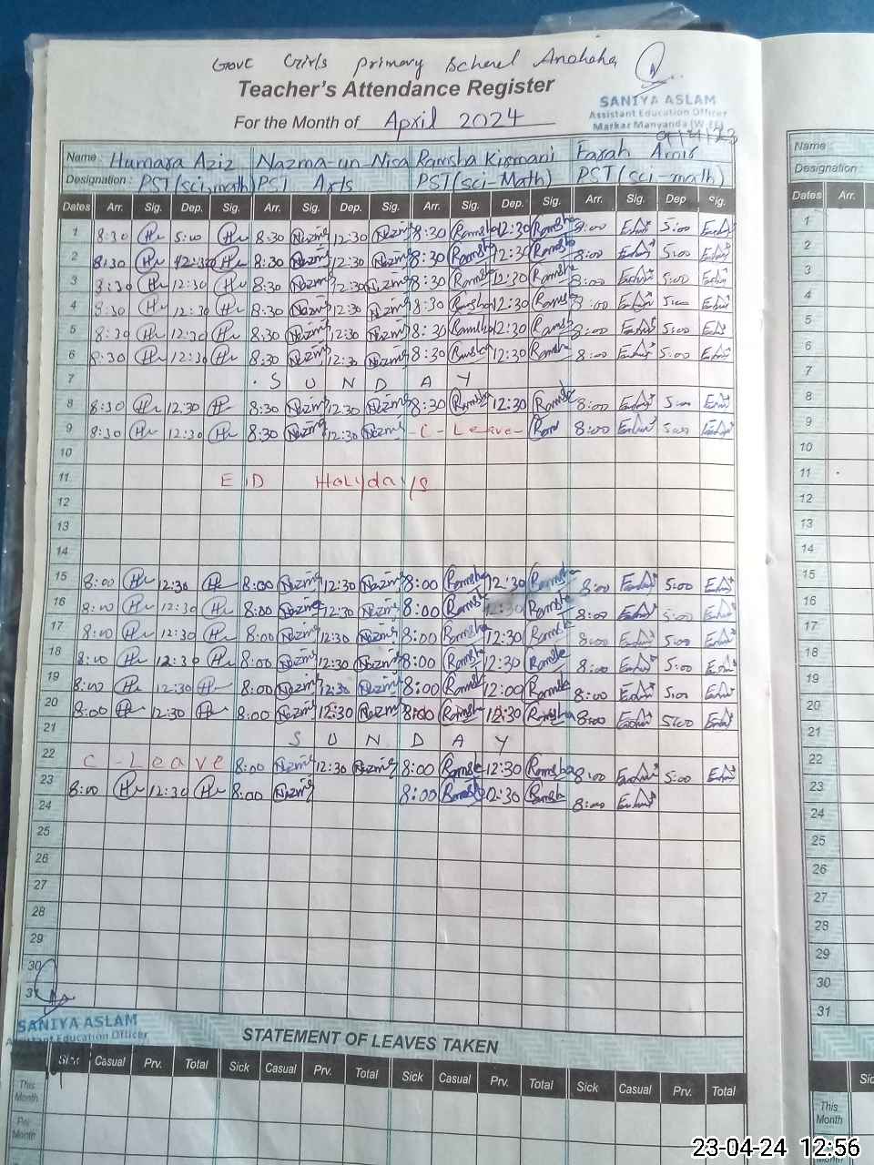 | Name: Hu**** Az**** Designation: (School Headmaster's/Headmistress's) PST Phone/Cell Number: 03**** |