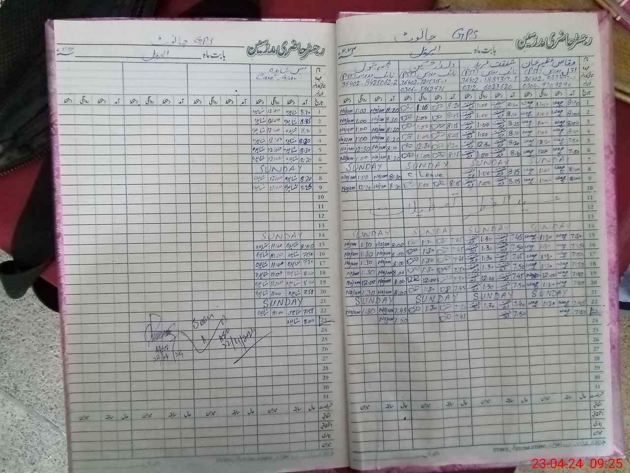 | CNIC | Full Name | Designation | R/C | Absence During Last Calender Month |