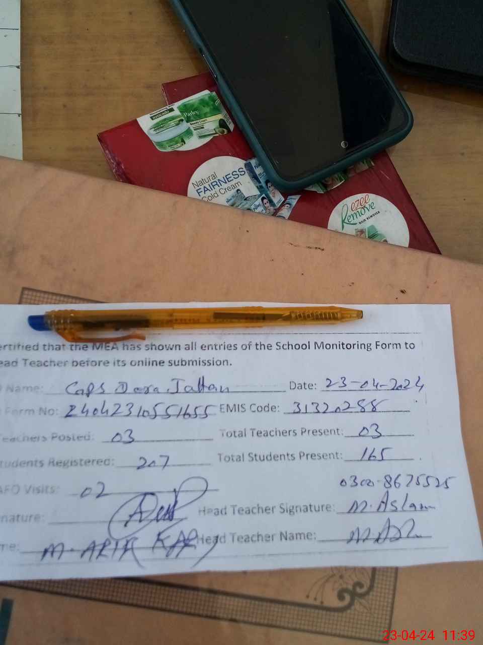 | EMIS Code: 31320288 | Name of School: GPS DERA JATTAN | |||