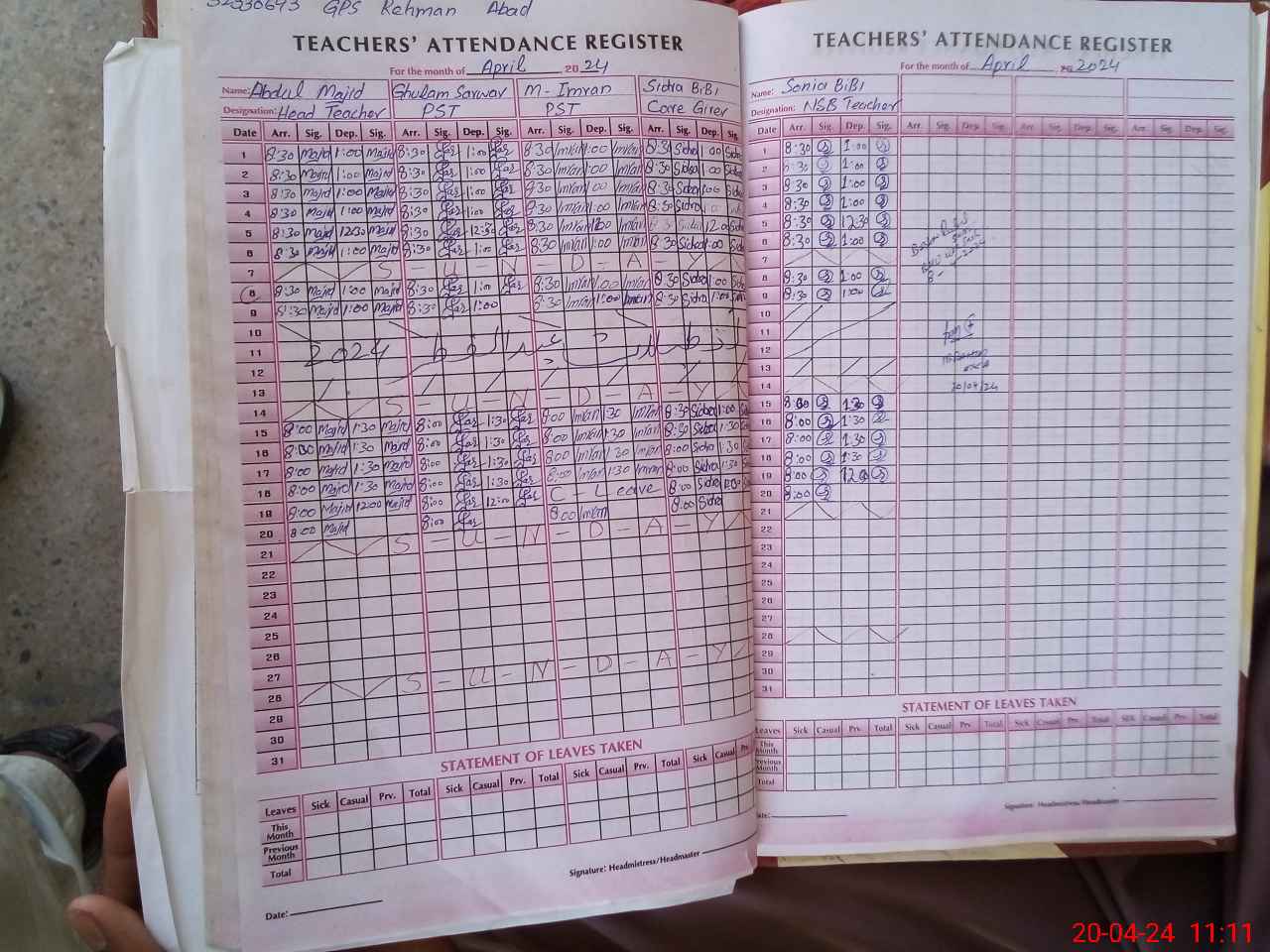 | EMIS Code: 32330693 | Name of School: GPS REHMAN ABAD | |||