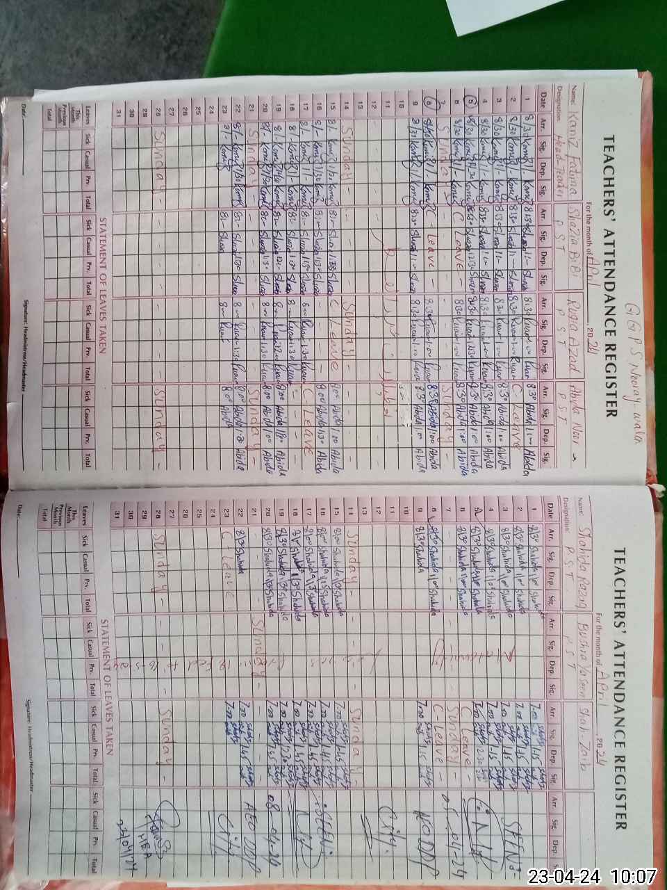 | Leave | Duty | Absent | Maternity | Medical | Ex- Pak |