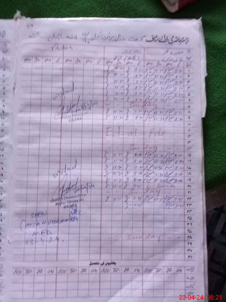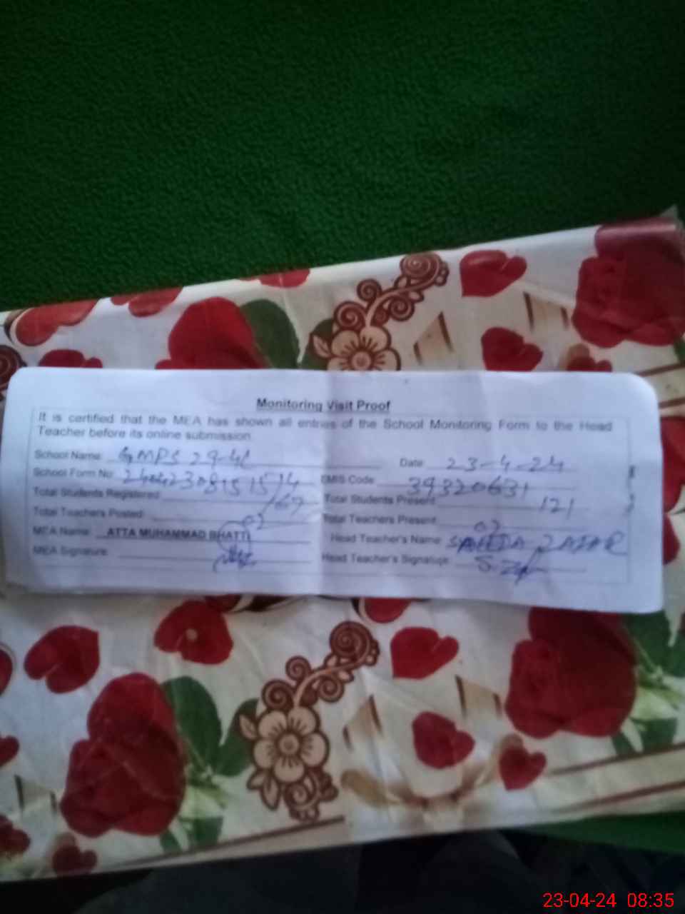 | Attendance Register | Head Teacher | MEA with School | Visit Proof |