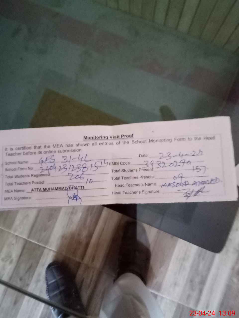 | EMIS Code: 39320290 | Name of School: GES CHAK 31/4-L | |||