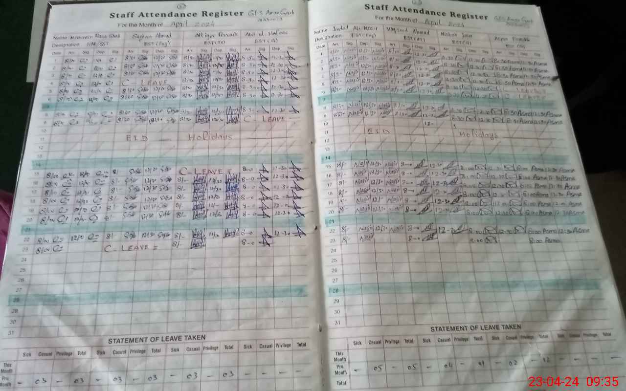 | 36**** | Na**** Pa**** | 1 | 0 | 0 | 31 | 0 | 0 | 0 | 0 | 0 | 0 | Absent (Un-Authorized) | |