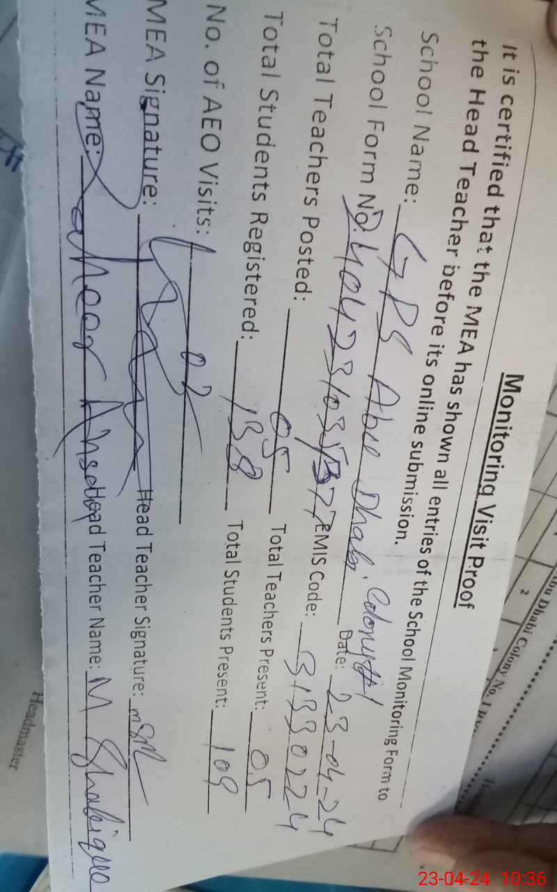 | EMIS Code: 31330224 | Name of School: GPS ABU ZAHBI COLONY NO. 1 | |||