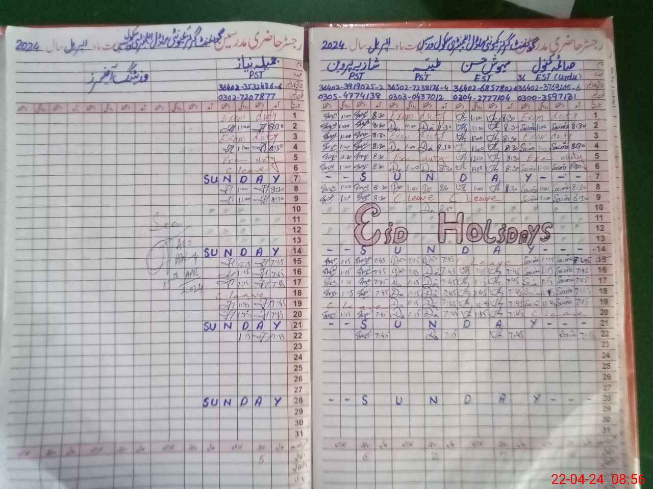 | Leave | Duty | Absent | Maternity | Medical | Ex- Pak |