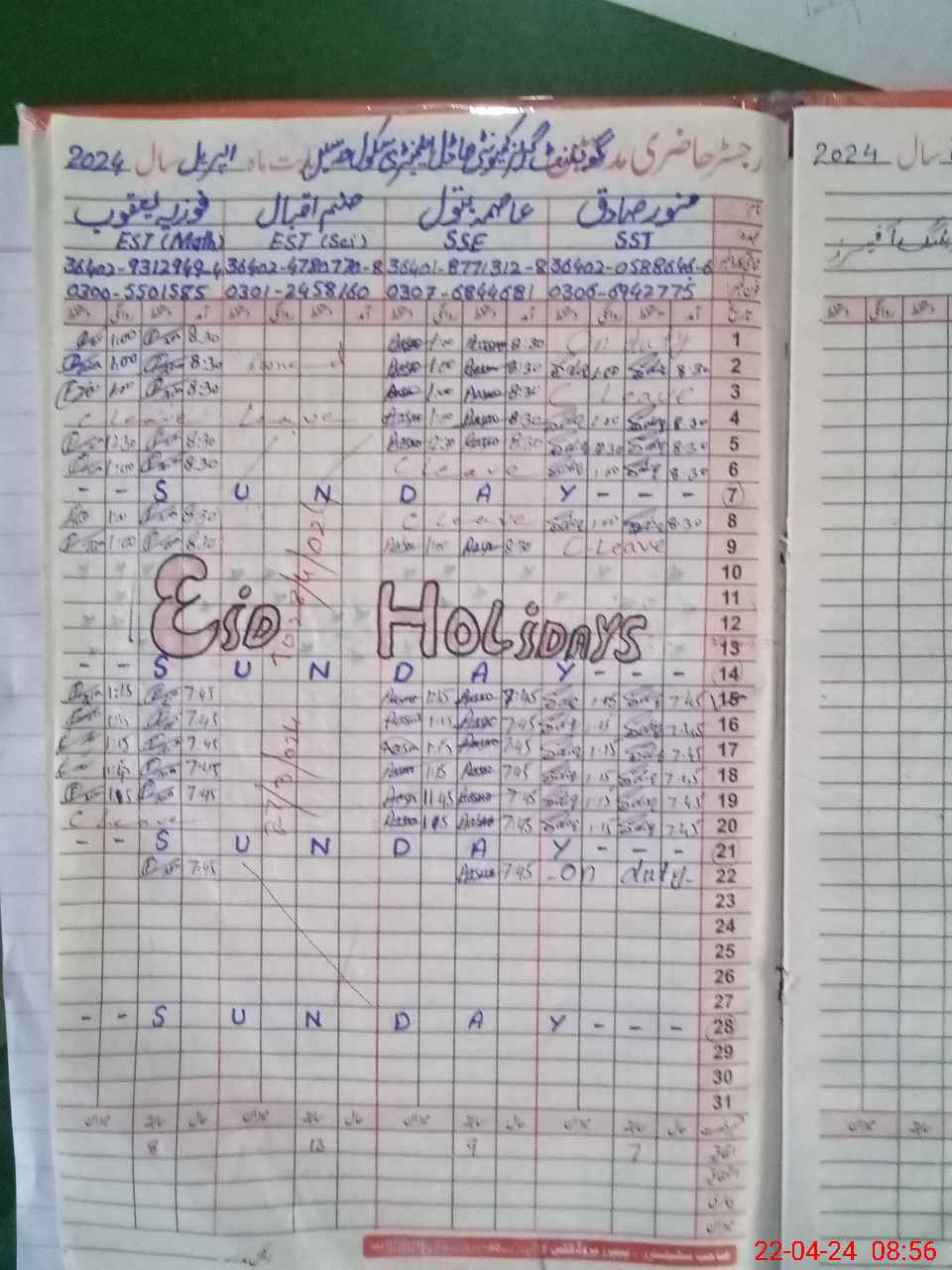 | Name: Mu**** Sa**** Designation: (School Headmaster's/Headmistress's) SST (English) Phone/Cell Number: 03**** |