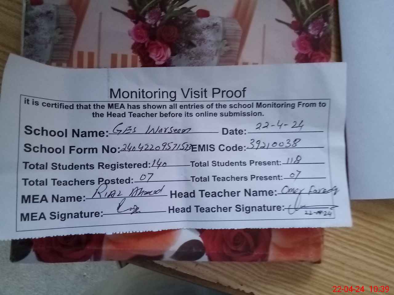| EMIS Code: 39210038 | Name of School: GES WARSEEN | |||