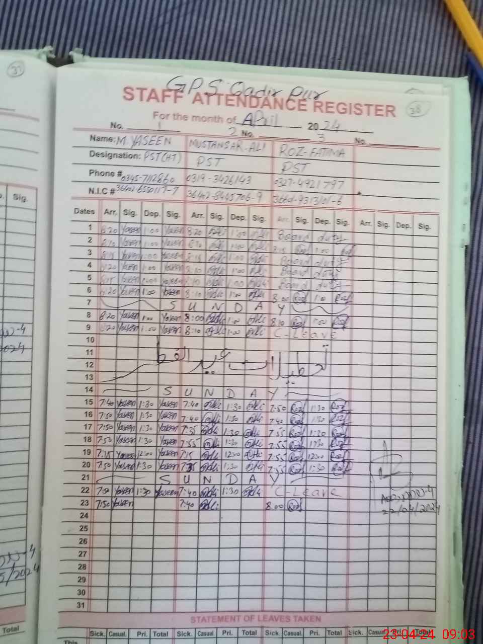 | Name: Mu**** Al**** Designation: (School Headmaster's/Headmistress's) PST Phone/Cell Number: 03**** |