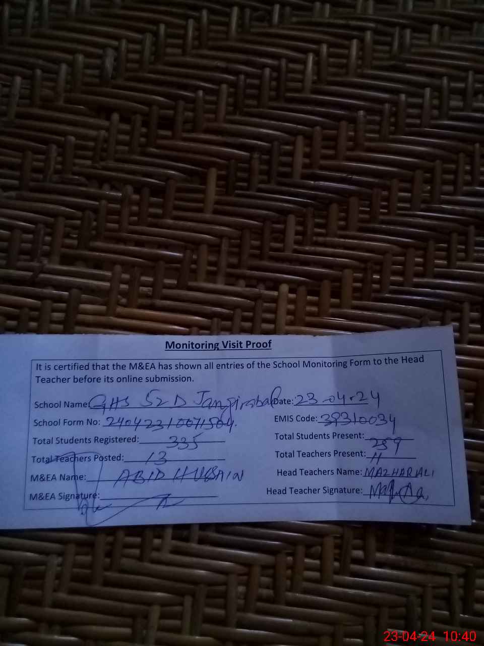 | Certified that this School was Inspected by the Undersigned MEA/DMO Today and the Information Stated Above is as Per Record. | |||||