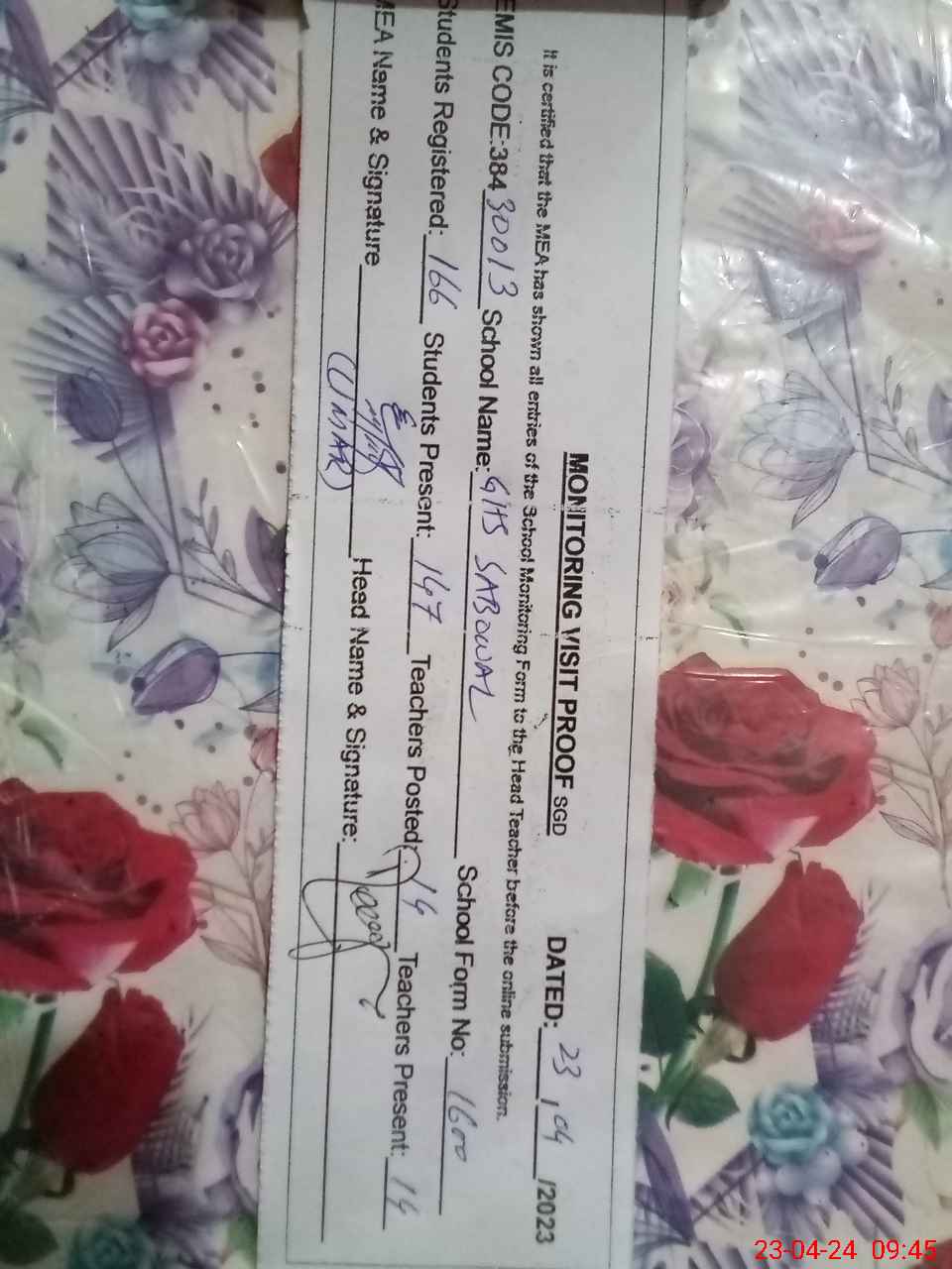 | Certified that this School was Inspected by the Undersigned MEA/DMO Today and the Information Stated Above is as Per Record. | |||||