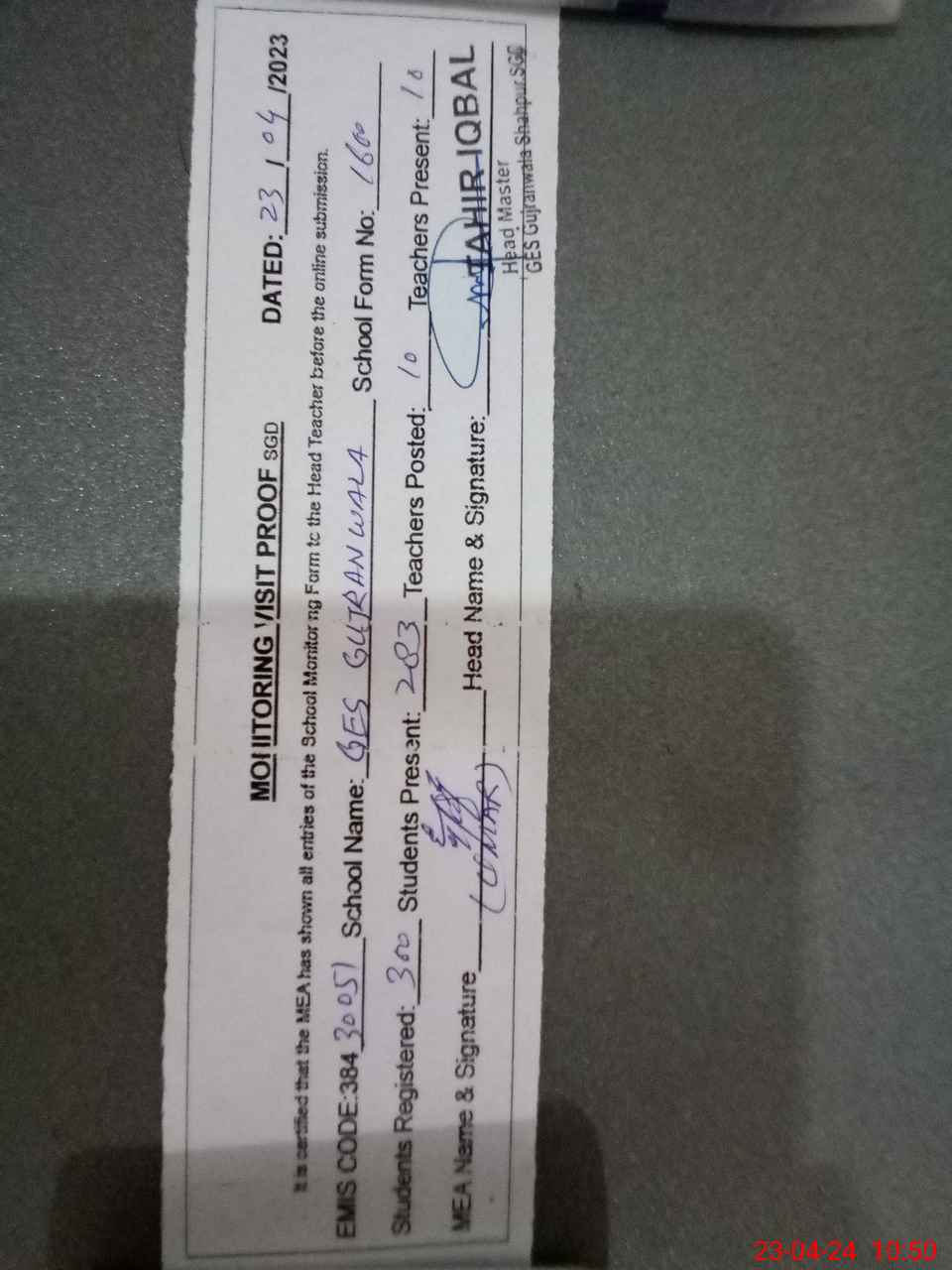 | EMIS Code: 38430051 | Name of School: GES GUJRAN WALA | |||