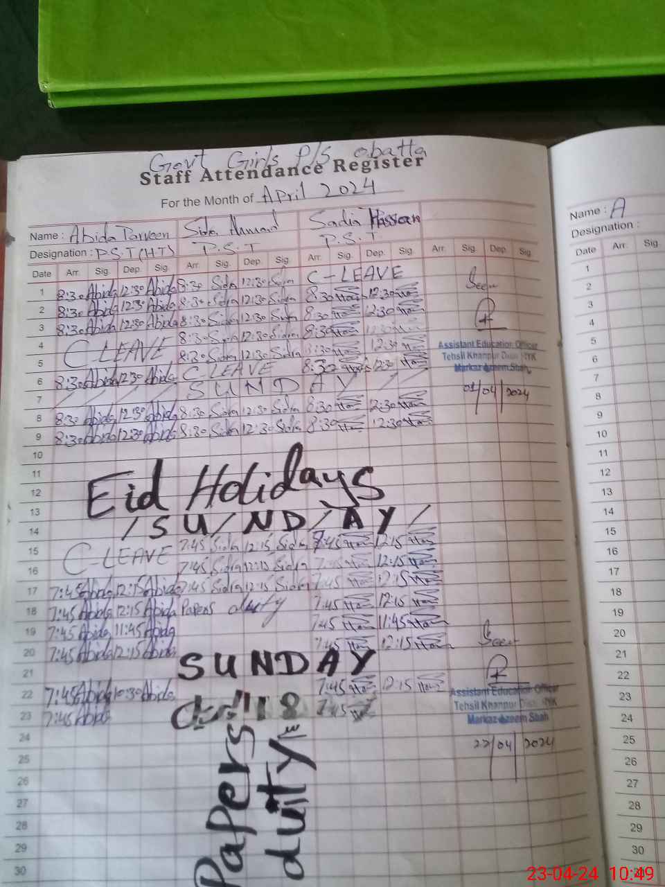 | 31**** | Si**** Ah**** | PST | Regular | 0 | 0 | 0 | 0 | 0 | 0 | 0 | 0 | 0 | Exam Duty |