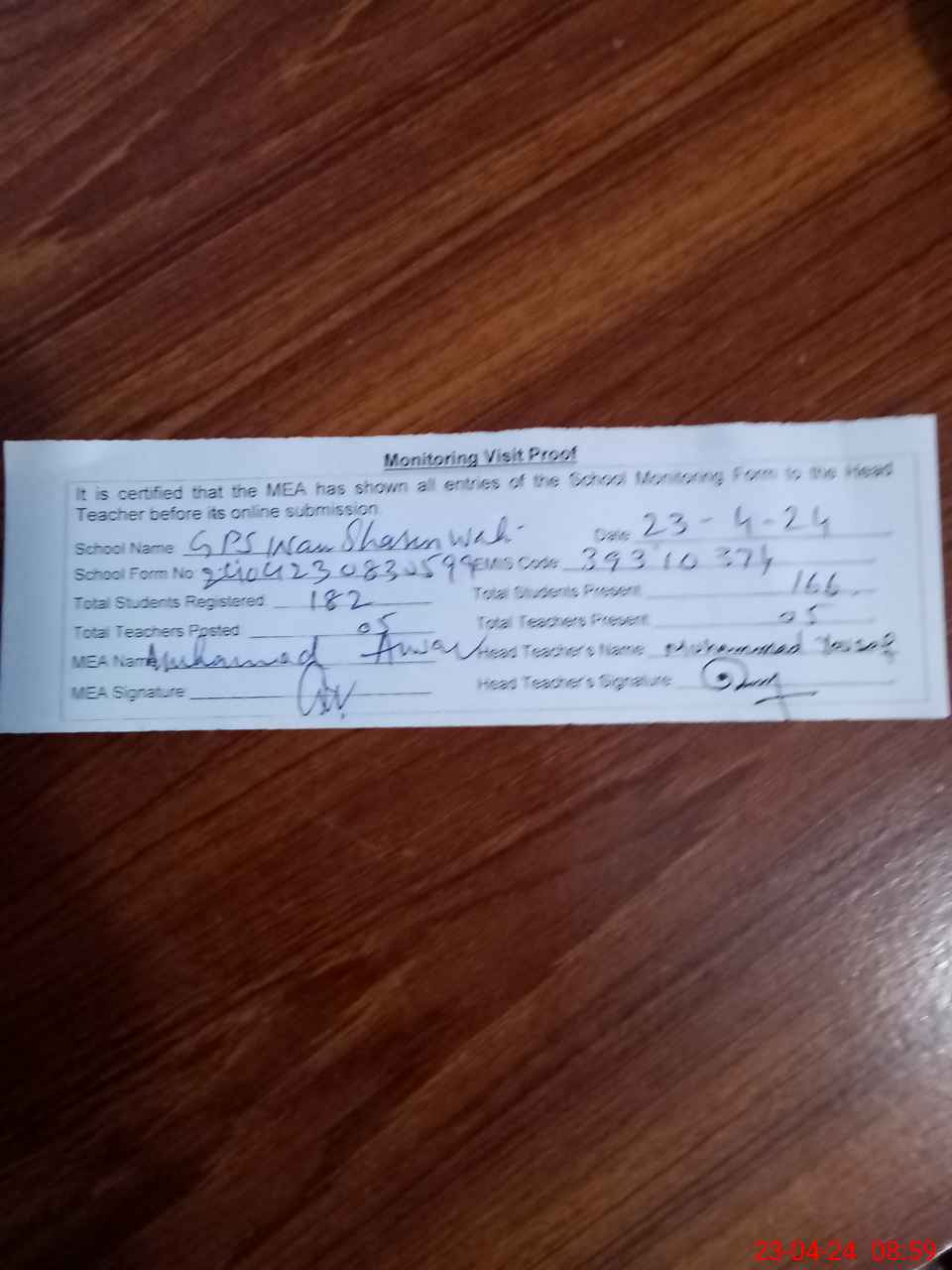 | EMIS Code: 39310374 | Name of School: GPS WAN SHERIN WALI | |||