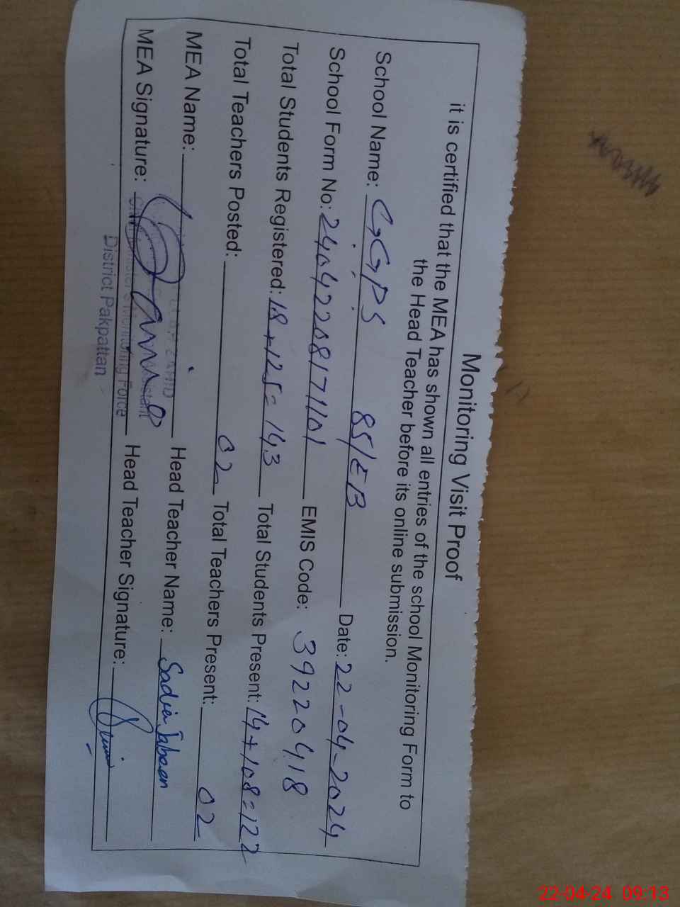 | EMIS Code: 39220418 | Name of School: GGPS 85 EB POST OFFICE QABOOLA | |||