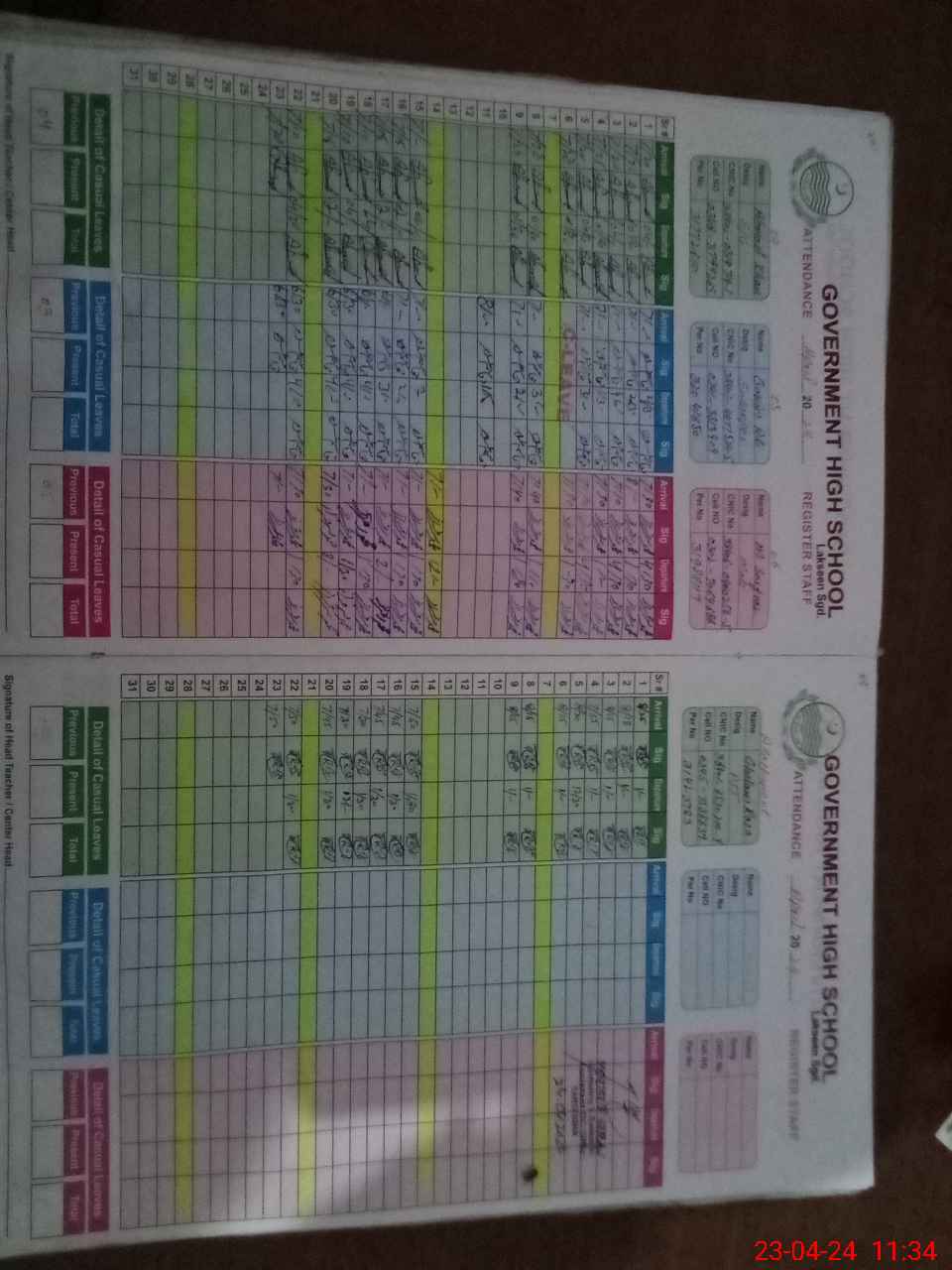| CNIC | Full Name | Designation | R/C | Absence During Last Calender Month |
