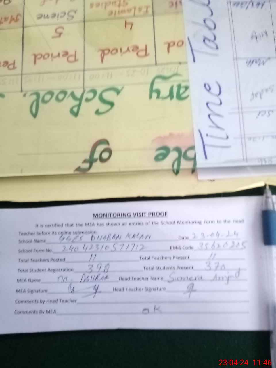 | Certified that this School was Inspected by the Undersigned MEA/DMO Today and the Information Stated Above is as Per Record. | |||||