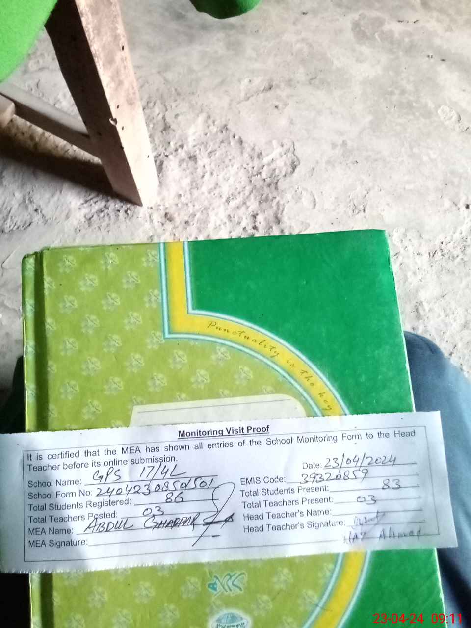 | EMIS Code: 39320859 | Name of School: GPS 17/4-L OKARA CANTT | |||