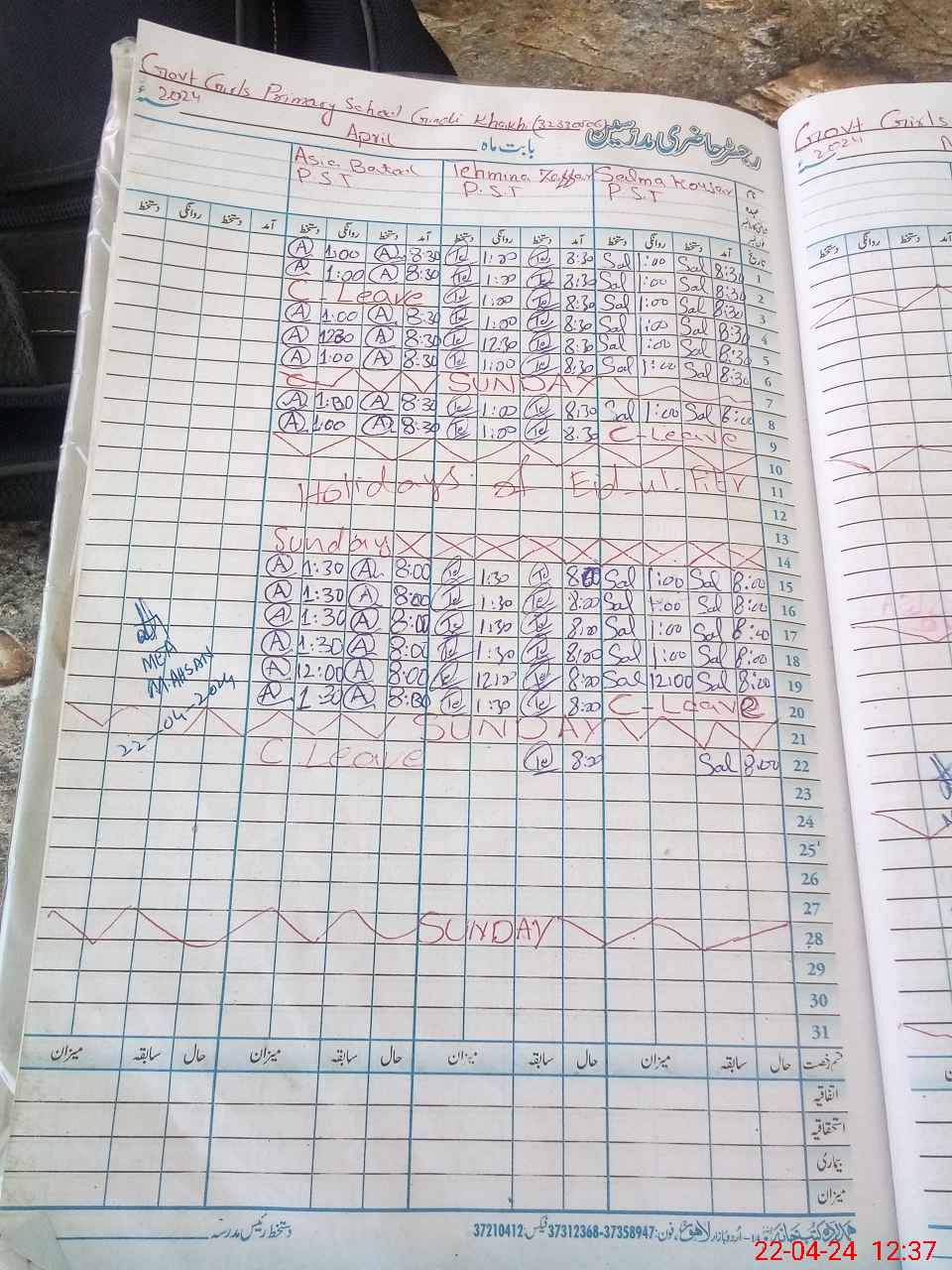 | Name: As**** Ba**** Designation: (School Headmaster's/Headmistress's) PST Phone/Cell Number: 03**** |