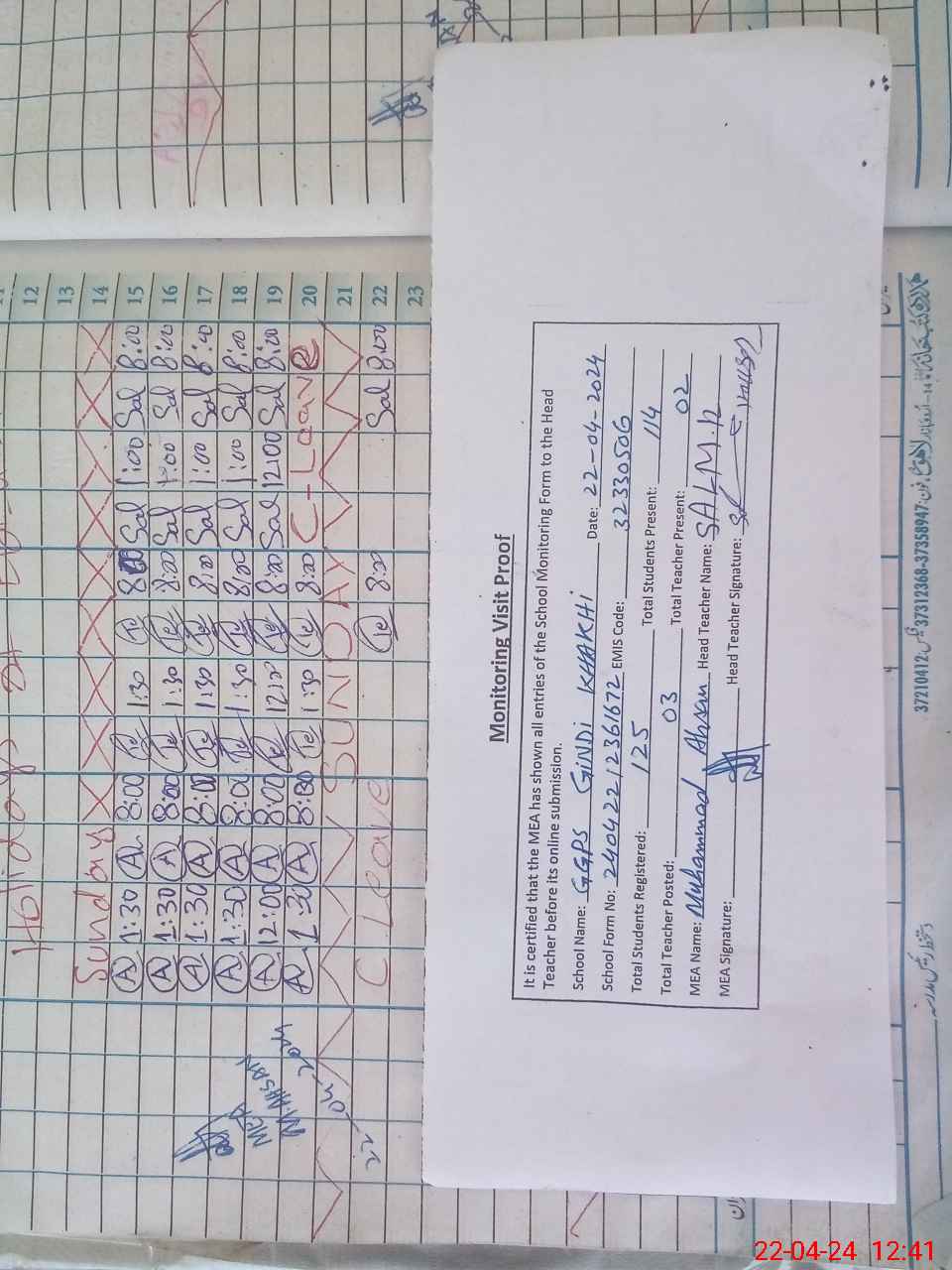 | EMIS Code: 32330506 | Name of School: GGPS GINDI KHAKHI | |||