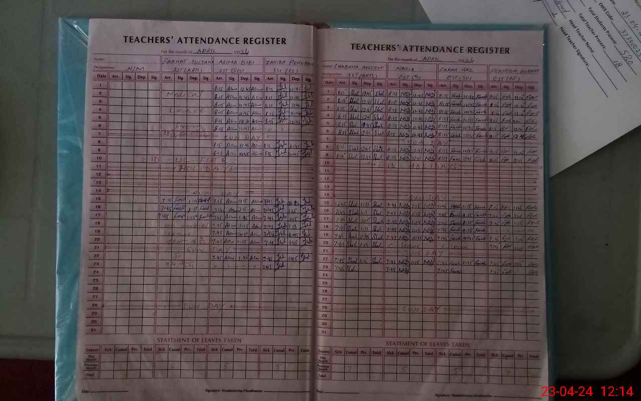 | Attendance Register | Head Teacher | MEA with School | Visit Proof |
