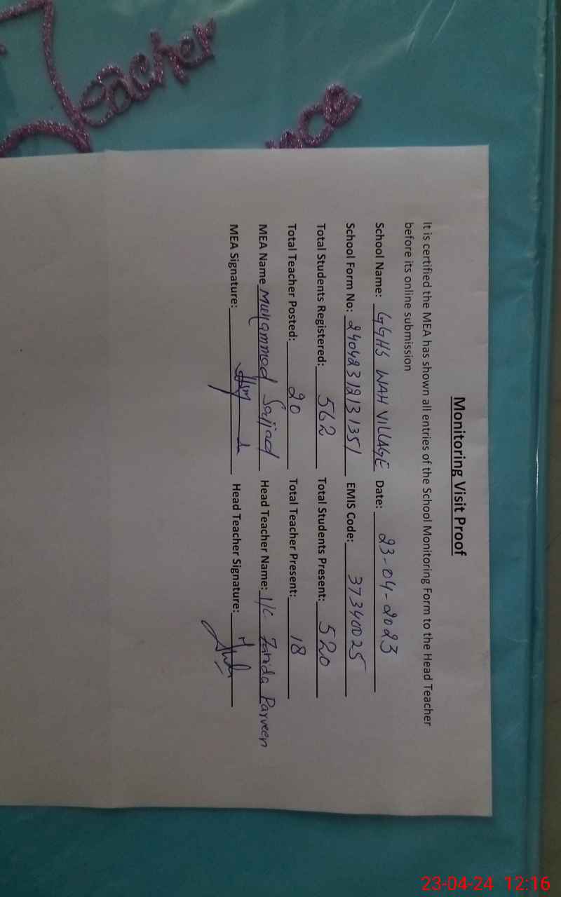 | EMIS Code: 37340025 | Name of School: GGHS WAH VILLAGE | |||
