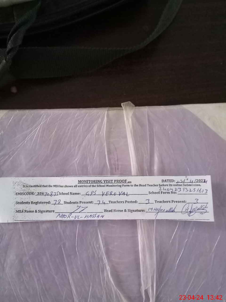 | Attendance Register | Head Teacher | MEA with School | Visit Proof |