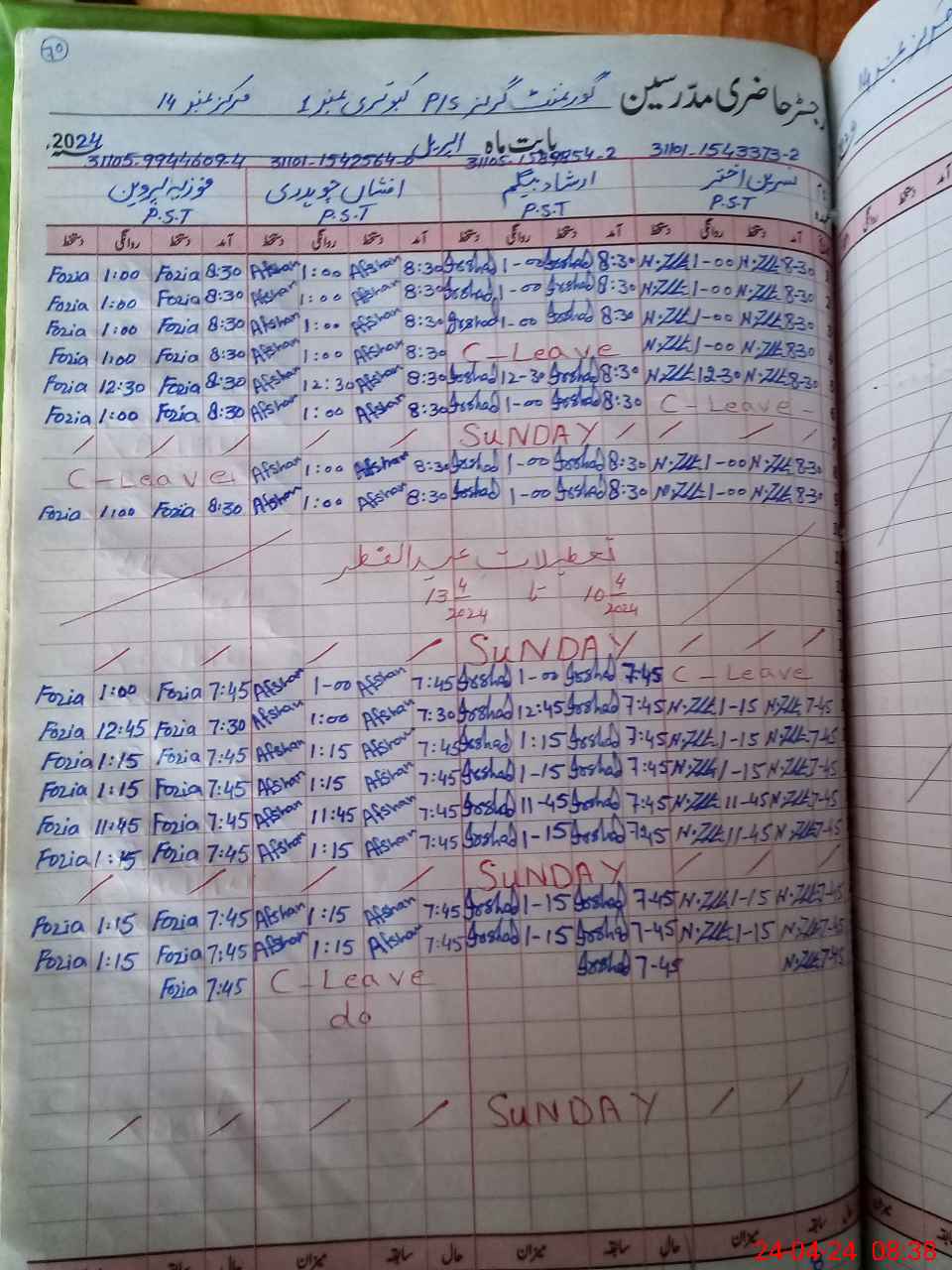 | CNIC | Full Name | Designation | R/C | Absence During Last Calender Month |