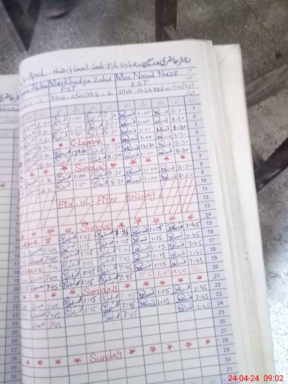 | Leave | Duty | Absent | Maternity | Medical | Ex- Pak |