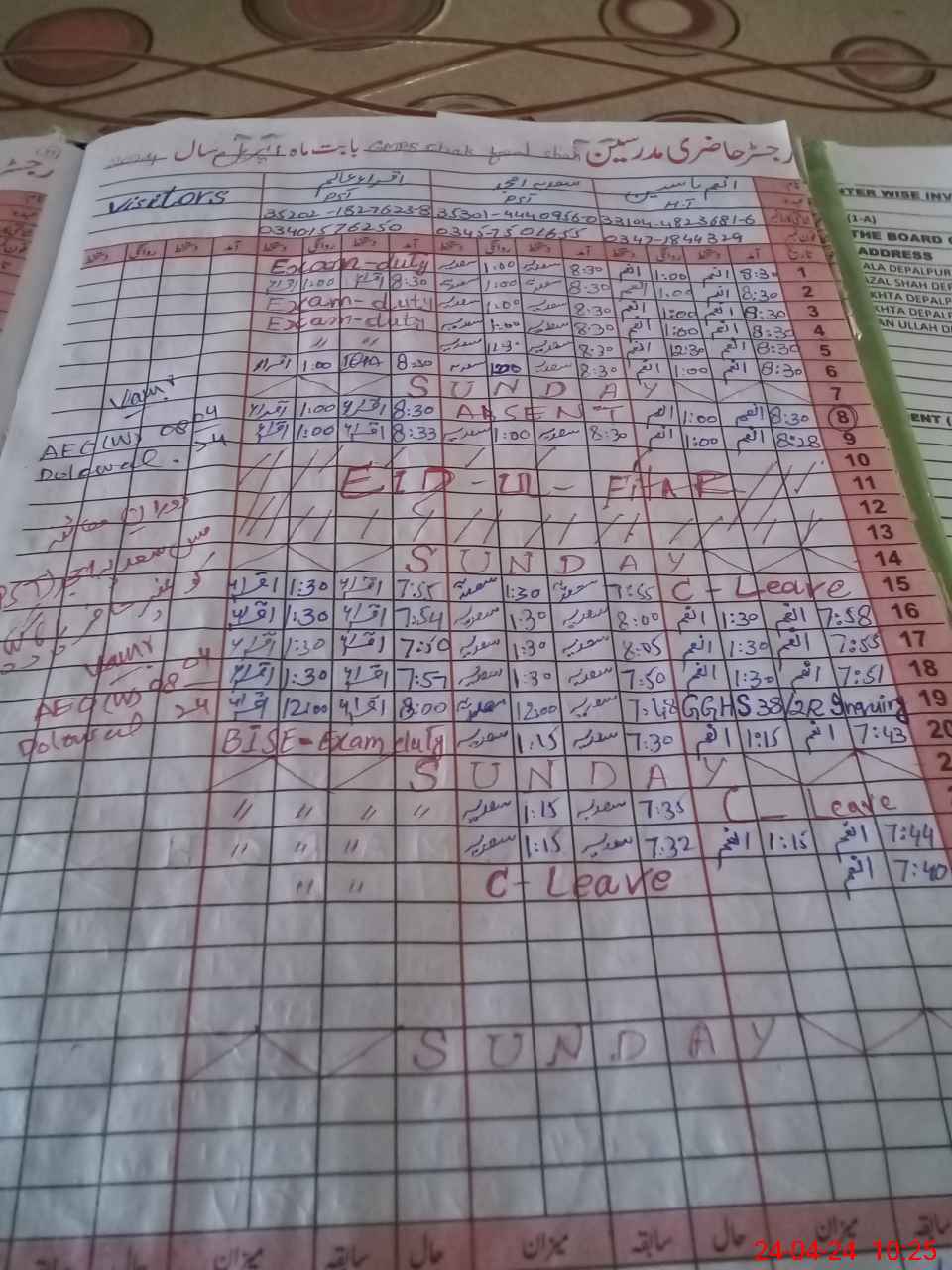| 35**** | Iq**** Al**** | PST | Regular | 0 | 0 | 0 | 0 | 0 | 0 | 0 | 0 | 0 | Exam Duty |