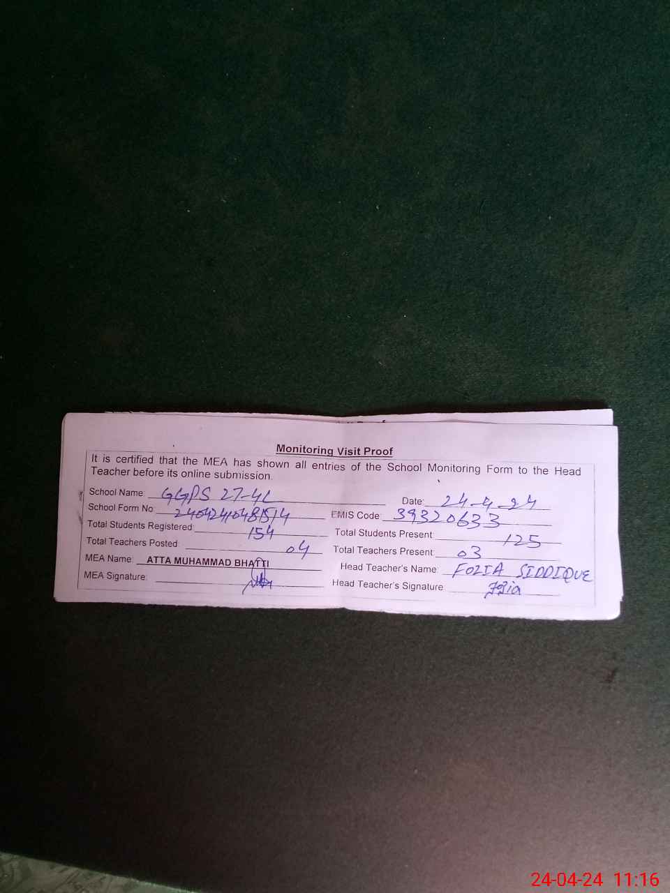 | EMIS Code: 39320633 | Name of School: GGPS CHAK NO. 27/4-L | |||