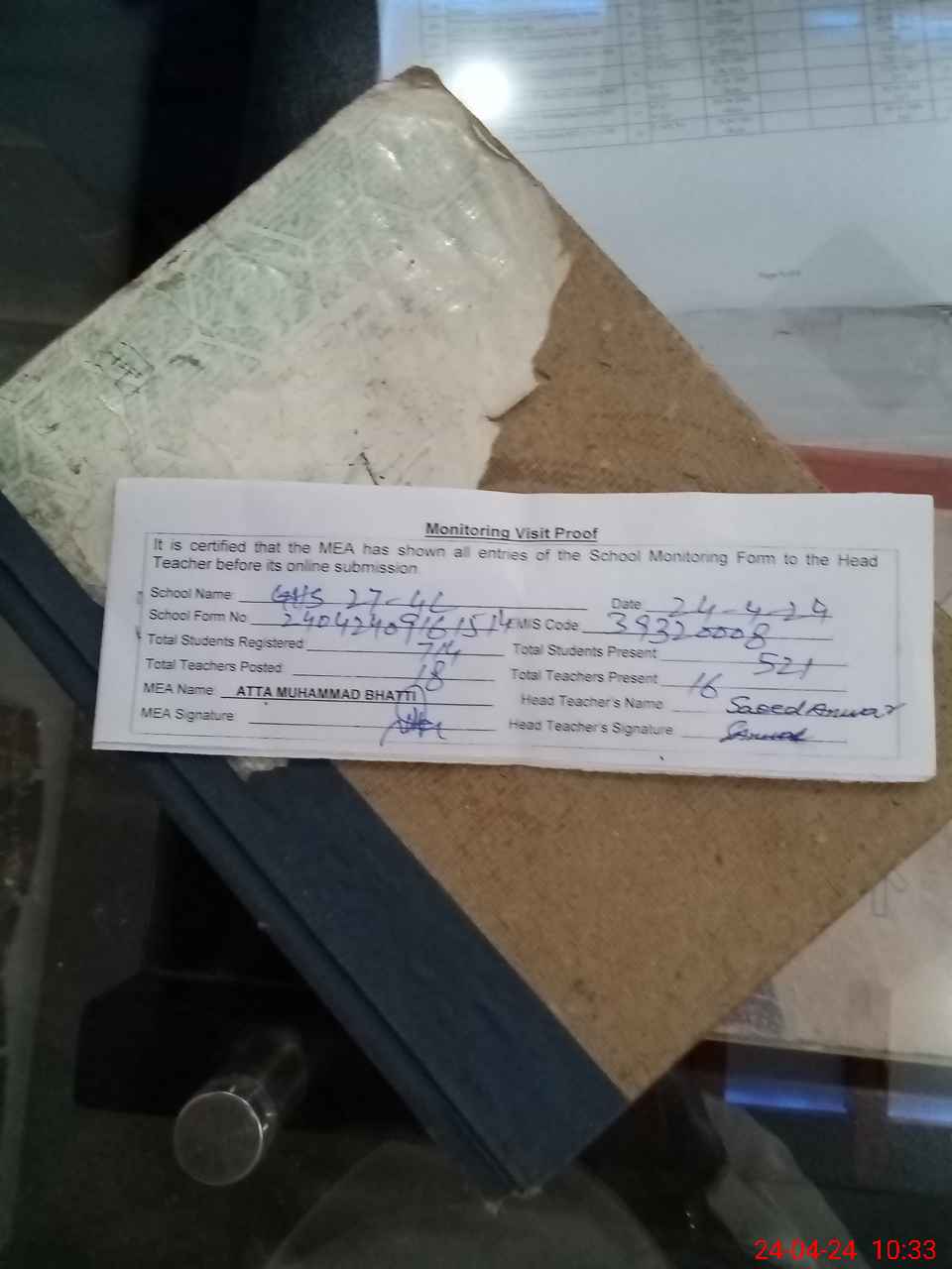 | Certified that this School was Inspected by the Undersigned MEA/DMO Today and the Information Stated Above is as Per Record. | |||||