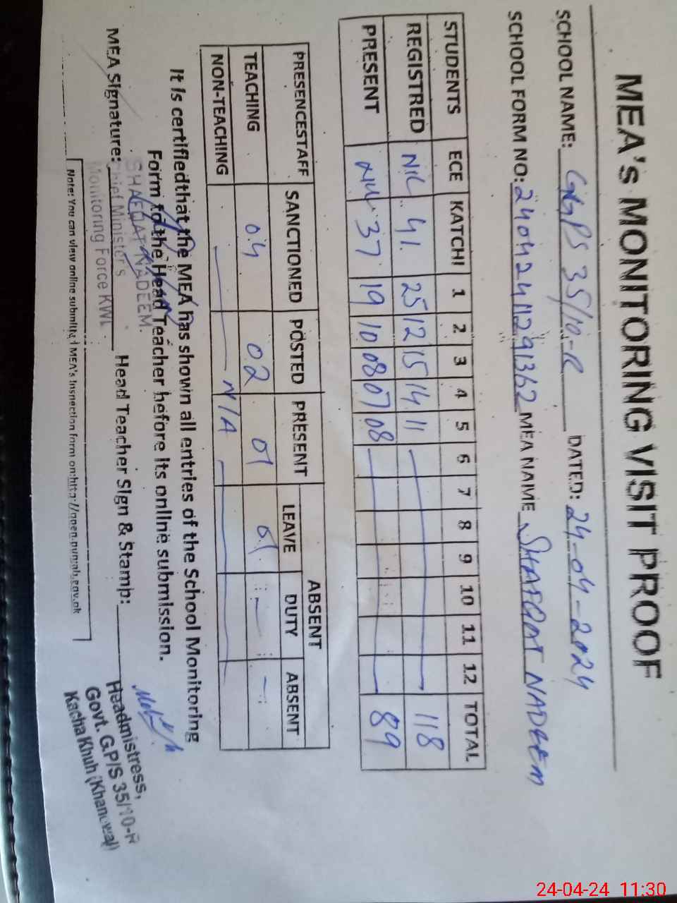 | EMIS Code: 36420473 | Name of School: GGPS 35/10-R, KACHA KHUH | |||