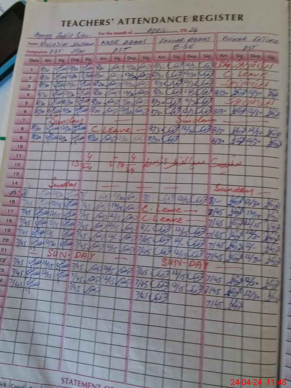 | Name: FA**** AB**** Designation: (School Headmaster's/Headmistress's) PST Phone/Cell Number: 03**** |
