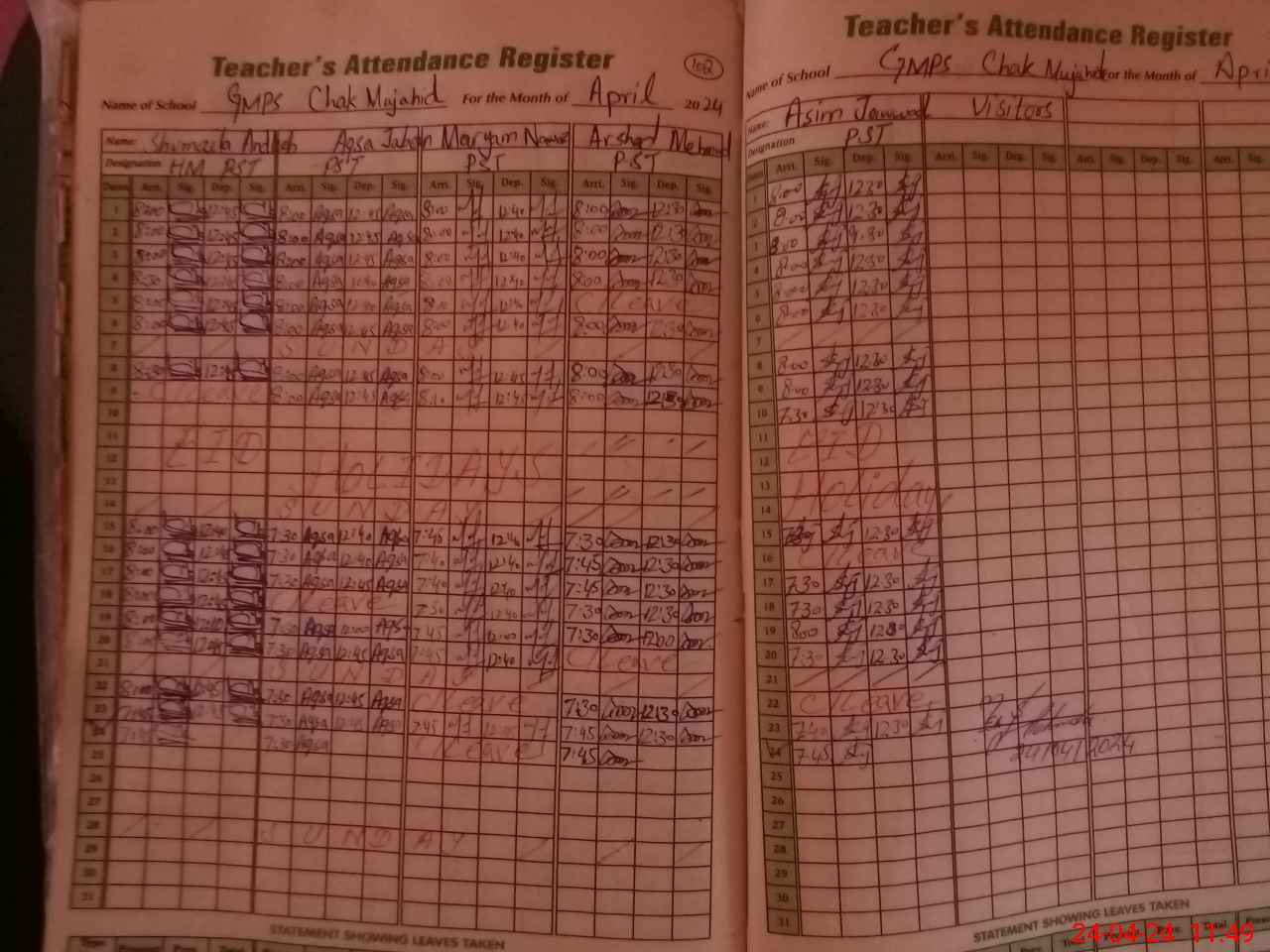 | Attendance Register | Head Teacher | MEA with School | Visit Proof |