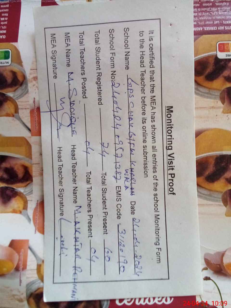 | EMIS Code: 31120190 | Name of School: GPS CHAK NO. 6/FW kharlanwala | |||