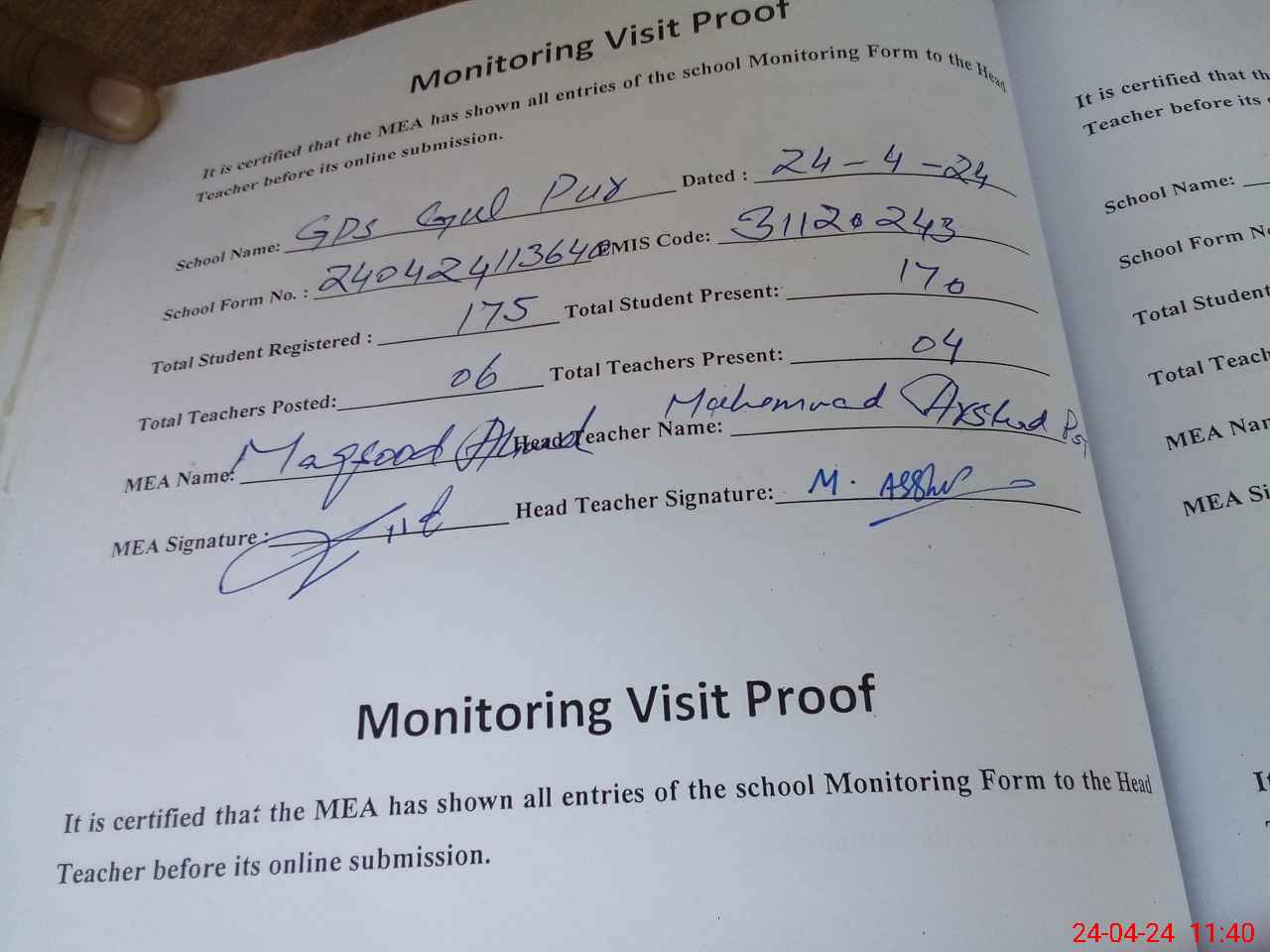 | EMIS Code: 31120243 | Name of School: GPS GUL PUR | |||
