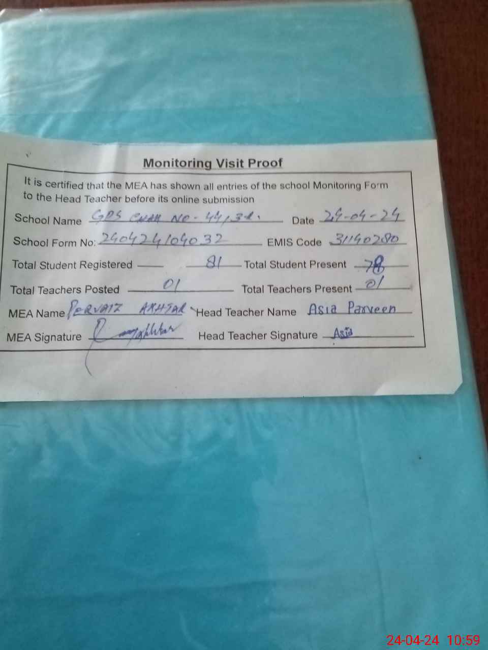 | EMIS Code: 31140280 | Name of School: GPS CHAK NO.44/3-R | |||