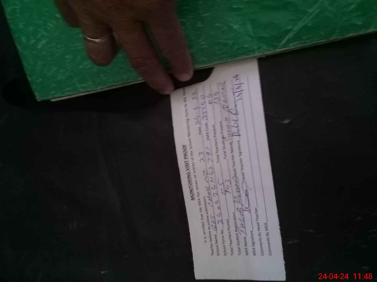 | Attendance Register | Head Teacher | MEA with School | Visit Proof |