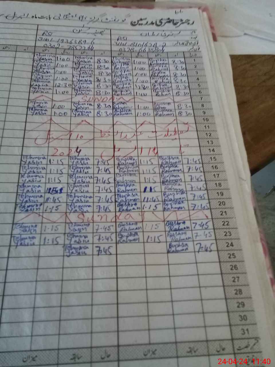 | CNIC | Full Name | Designation | R/C | Absence During Last Calender Month |