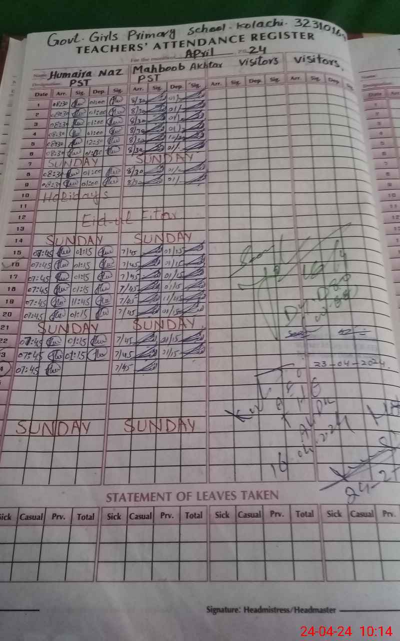 | Name: HU**** NA**** Designation: (School Headmaster's/Headmistress's) PST Phone/Cell Number: 03**** |