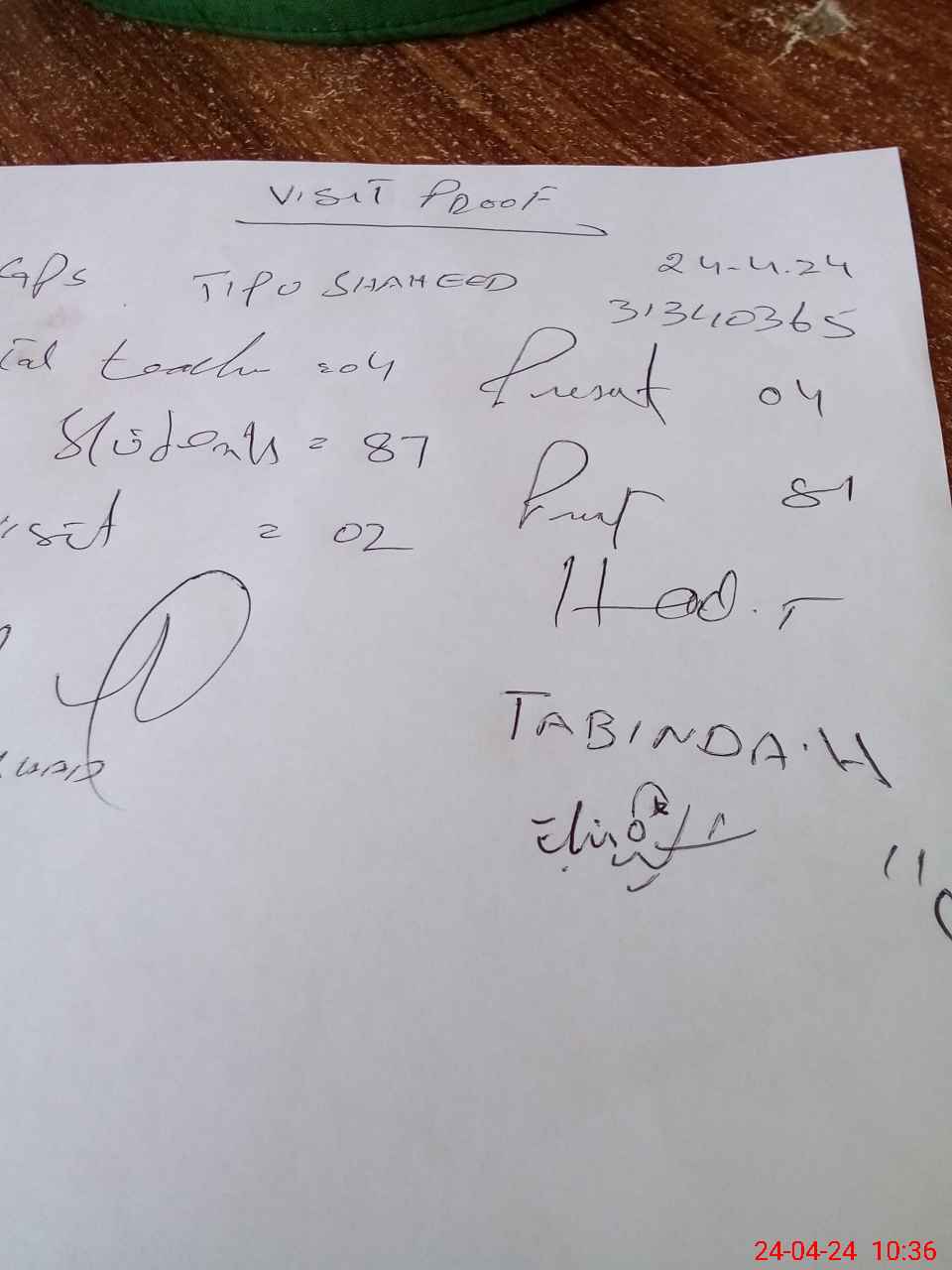 | Attendance Register | Head Teacher | MEA with School | Visit Proof |