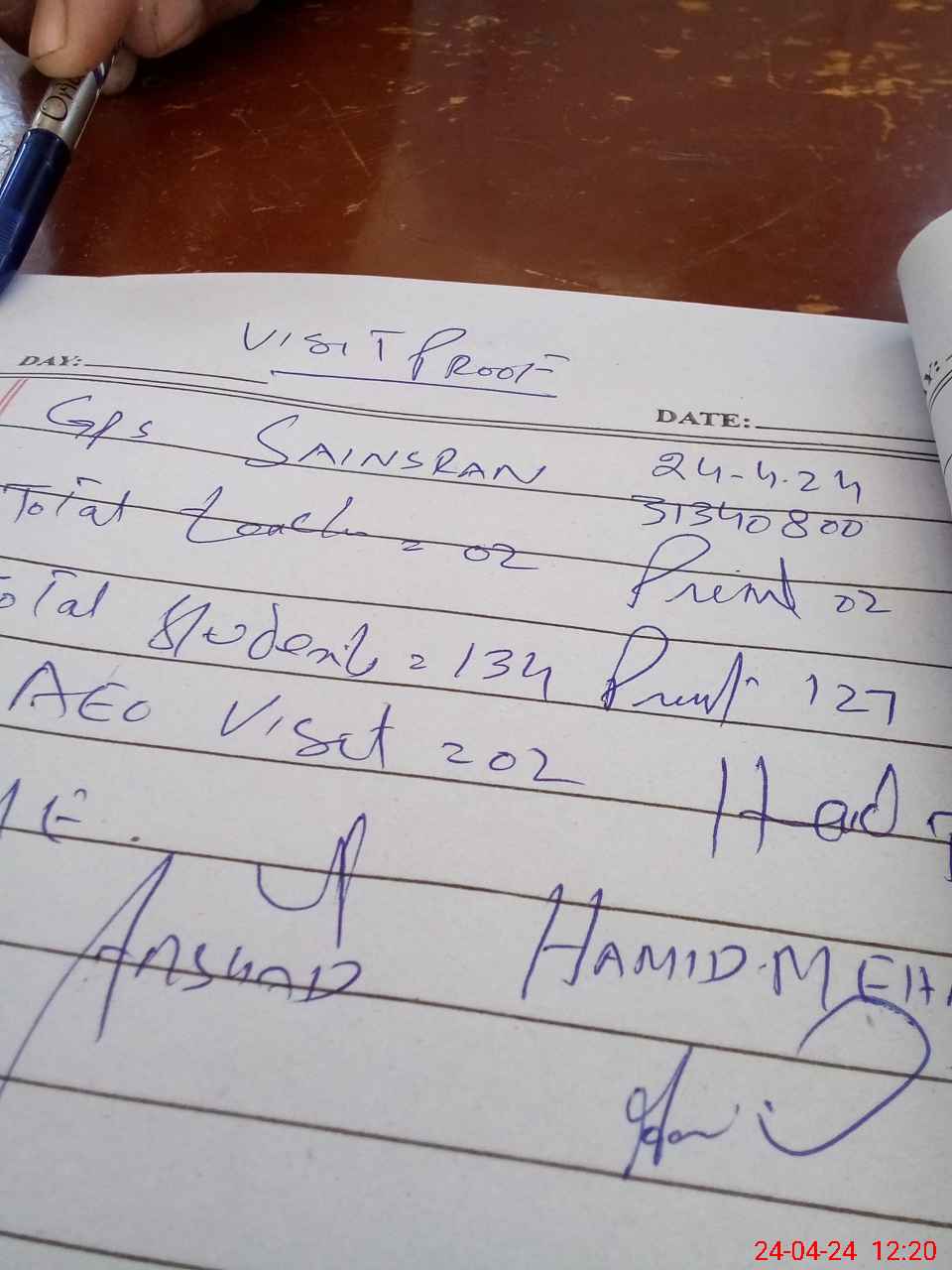| EMIS Code: 31340800 | Name of School: GPS SAINSRAN | |||